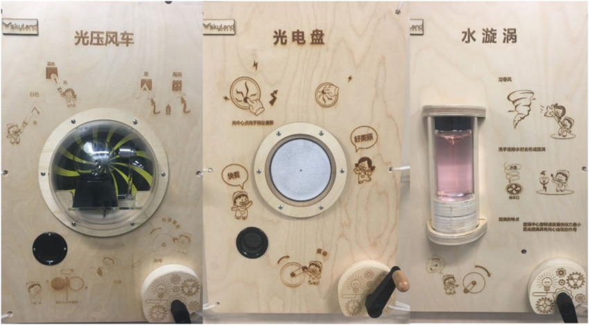 微科普墻將傳統(tǒng)的、簡(jiǎn)陋的科學(xué)器件與木工、激光切割融合而出的作品,用更加友好和直觀的形式來(lái)體驗(yàn)科學(xué),吸引體驗(yàn)者來(lái)體驗(yàn)和實(shí)踐,同時(shí)也能給每一位大小體驗(yàn)者在腦海中留下深刻的印象,起到科普的效果。