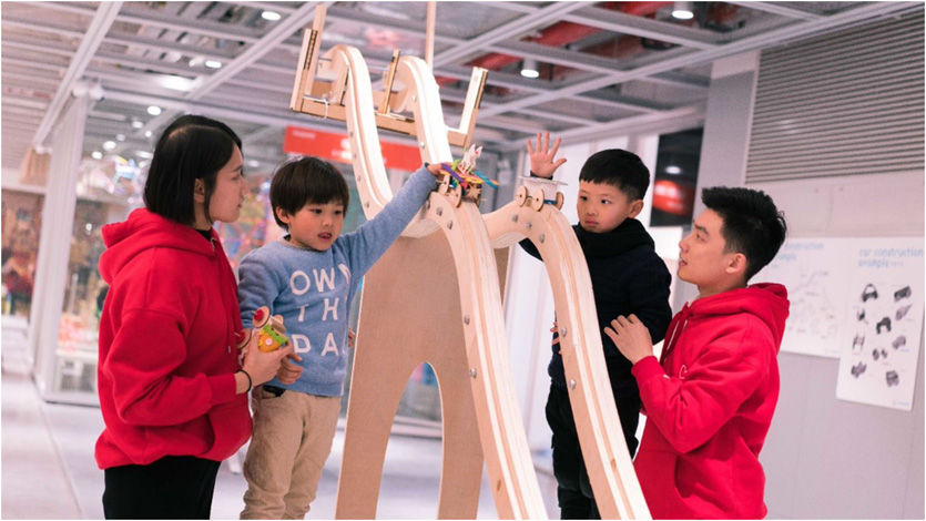《無(wú)動(dòng)力小車(chē)》是工程學(xué)和設(shè)計(jì)學(xué)的融合體現(xiàn),體驗(yàn)者可以在這個(gè)環(huán)節(jié)制作出自己與眾不同的小車(chē)。這里的小車(chē)是一個(gè)小產(chǎn)品,體驗(yàn)者可以運(yùn)用數(shù)學(xué)物理知識(shí),學(xué)習(xí)小車(chē)結(jié)構(gòu)和車(chē)體設(shè)計(jì),并結(jié)合實(shí)際測(cè)試調(diào)整改造小車(chē)。能夠促進(jìn)個(gè)性化探索與創(chuàng)意表達(dá),玩中學(xué),學(xué)中玩,在體驗(yàn)中了解物理規(guī)律、車(chē)輛工程等知識(shí)。