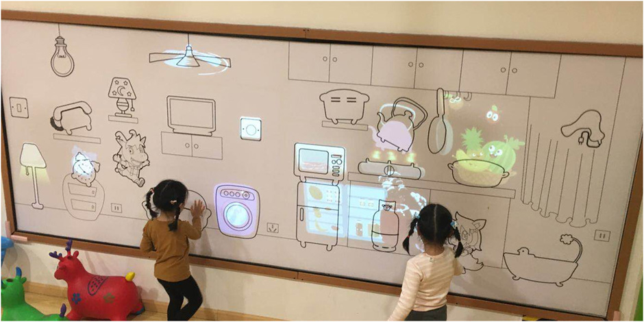 《神奇魔法墻》,實(shí)景造型與多媒體內(nèi)容相結(jié)合,來(lái)和體驗(yàn)者互動(dòng)。魔法墻內(nèi)置不同的內(nèi)容主題,有海洋、森林、宇宙、生物等,這些知識(shí)貫穿在體驗(yàn)者的互動(dòng)體驗(yàn)過(guò)程中。通過(guò)肢體觸碰,靜態(tài)造型墻會(huì)呈現(xiàn)逼真的動(dòng)態(tài)效果。魔法墻采用墻面觸摸和交互技術(shù),體驗(yàn)者手指觸摸墻面上的影像,有聲音和影像閃動(dòng),不觸摸時(shí)候就會(huì)消失,賦予體驗(yàn)者的雙手不同尋常的魔力。